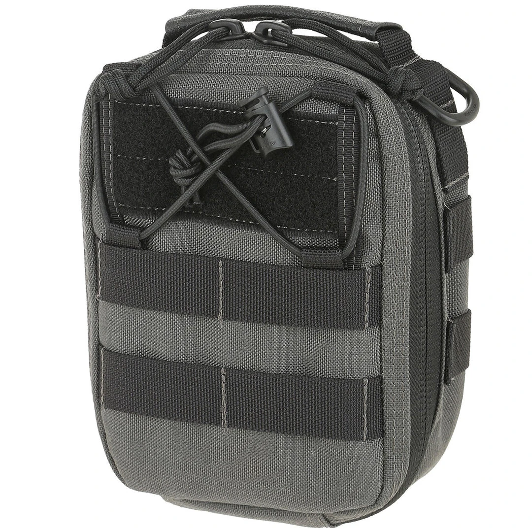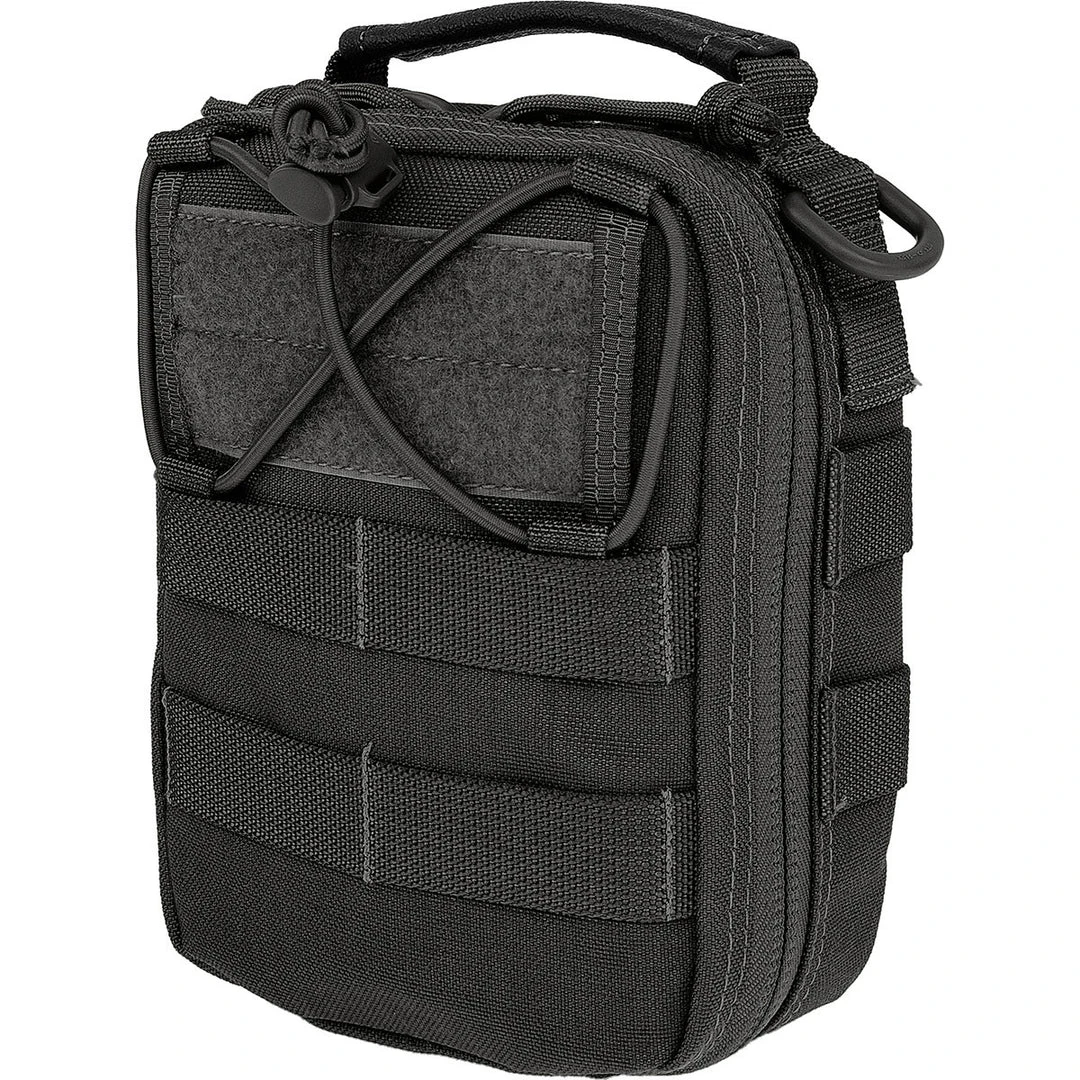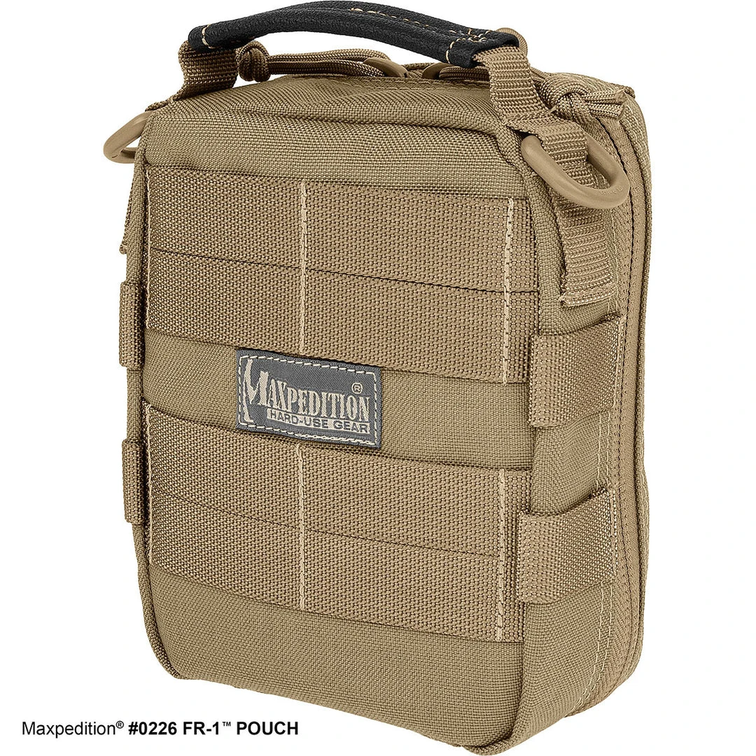 Specialized medical pouch with adjustable interior The FR-1 Pouch design evolved from a first aid kit bag with added versatility. It can be used as a general purpose organizational pouch or even a specialized medical pouch. Both front and back halves have layered pockets topped with a wide array of elastic loops, essential for keeping contents in place. The full zipper clamshell opening can be fine tuned to various angles using a paracord adjuster. Last but not least, the FR-1 has a Torch-Lair in front with bungee cord compression. Note: First aid supplies shown in photo are not included.