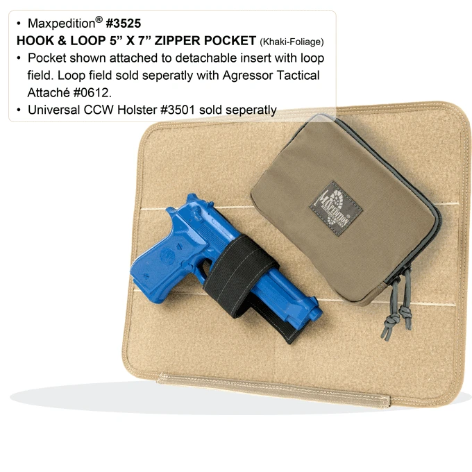 - Pocket is fully backed with hook and may be attached to loop field