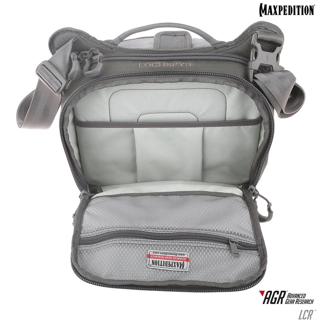 The Lochspyr (pronounced “LOCK-SPIRE”) is a crossbody shoulder bag optimized for concealed carry. The rear CCW compartment is fully loop-lined and has an 16″ U-shaped zipper opening. The main compartment has a padded pocket sized to fit most tablets. There is an adjustable reinforced seatbelt webbing shoulder strap with quick release buckle and padded shoulder pad.