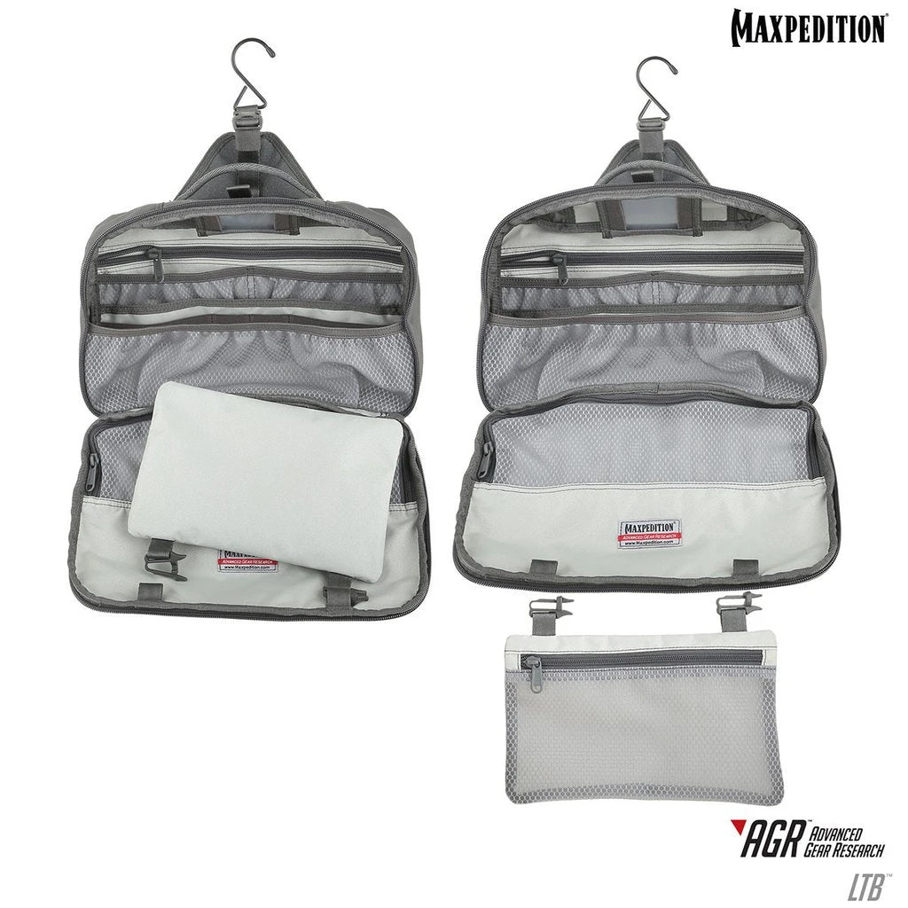 The LTB Lightweight Toiletry Bag is perfect for keeping everyday toiletries organized while traveling. The bag can be opened and hung onto any closet rod or bathroom hook. The garment hook can easily be stored away by folding it under the flap and securing the buckle. A detachable zippered mesh pocket, measuring 9 x 6 inches, can hold small bottles of carry-on liquids that need to go through an airport security screening. The 1 quart pouch fits the 3-1-1 TSA rules.