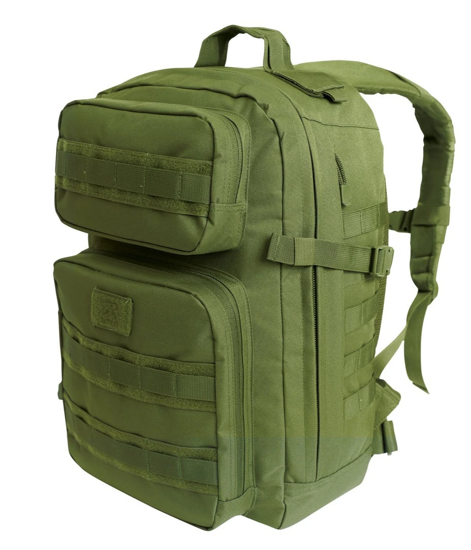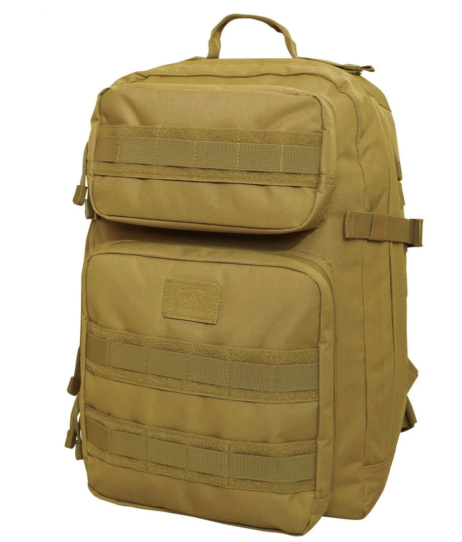 Rothco’s Fast Mover Tactical Backpack features an enhanced design to aid in comfort, durability, and all-day mobility. Made of a sturdy 600 denier polyester, the tactical pack measures 10″ x 12″ x 19″ and features multiple compartments ideal for securely storing gear. The large main compartment (6.5″ x 12″ x 19″) contains three mesh pockets with a zipper closure as well as one pocket with a drawstring closing. There are also two secondary compartments on the front of the pack. The top section (2″ x 9″ x 5″) contains 2 open-top pockets and 4 elastic loops for loose objects. While the lower section (2″ x 9″ x 10.75″) contains 4 open-top pockets, 1 zippered pocket, and 4 pen slots. Rothco’s Fast Mover Pack also features dual hidden side compartments that are ideal for storing compact gear such as a pocket knife, multi-tool, and important documents. The padded back and contoured yoke-style shoulder straps evenly distribute the weight of the pack. The fully adjustable and removable sternum and waist straps provided added stabilization and weight distribution pack for all-day comfort. In addition, the tactical pack features dual-sided cinch straps, top carry handle, and double zippers. Rothco’s Fast Mover Tactical Back is MOLLE compatible with MOLLE webbing on the side and front of the pack. The tactical bag is also hydration compatible with a bladder insert and dual pass-through ports for a hydration hose.