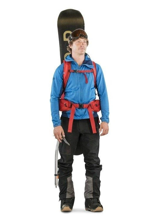 - Horizontal Backpanel Snowboard Carry – A reinforced hipbelt wing provides quick horizontal carry across the backpanel of the backpack