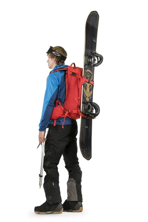 - Horizontal Backpanel Snowboard Carry – A reinforced hipbelt wing provides quick horizontal carry across the backpanel of the backpack
