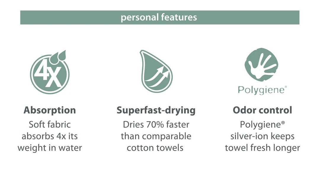 The Personal towel is the best-selling quick-drying microfiber towel on the market, and with good reason. Its ultra-versatile, absorbent, and superfast-drying performance make it great for any activity, including camping, travel, fitness, swimming and more. The Personal towel also stays fresh longer thanks to Polygiene® odor control. With three fresh new prints, it’s easy to make a personal statement with the Personal towel.