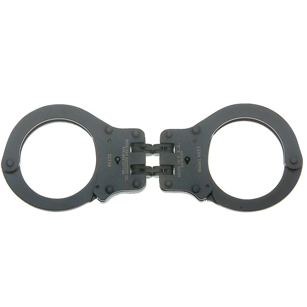 The Model 802C features an improved internal lock mechanism for increased tamper resistance, smoother ratcheting action and greater durability. The hinged design provides additional restraint by more effectively restricting hand and arm movement. The black oxide finish is designed for low visibility or tactical situations. The 802C incorporates spun rivet construction, push pin double lock capability and nickel finish. Two keys supplied. The Model 802C is designed to meet National Institute of Justice Standard 0307.01 and comes with a lifetime warranty for manufacturer defect. Made in USA.