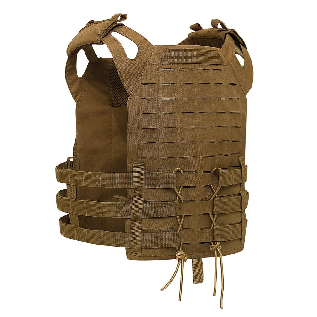 Be prepared for any battlefield contingency with Rothco’s durable Laser Cut Lightweight Armor Carrier MOLLE Vest. The inside of the military vest is partially lined with ventilation mesh and stretch material for breathability. This tactical vest comes equipped with three hook-and-loop sealed pistol magazine pockets and rifle magazine pockets to store all of the ammo you need, and hook-and-loop closed plate carriers on the inside front and back. The cummerbund on the front of the military tactical vest is secured with elastic cords and adjusts to fit most sizes. The tactical vest carrier also comes with two single-strap cummerbunds that you can adapt to your preferences. Two detachable hook-and-loop fastened shoulder pads cushion your tactical gear vest’s weight against your body and come with hydration hose loops. With over 25 rows of MOLLE slots located on the front, back, and cummerbund as well as a hook-and-loop patch on the front for logos and morale patches, this lightweight military vest is perfect for soldiers, tactical professionals, and MilSim enthusiasts alike.