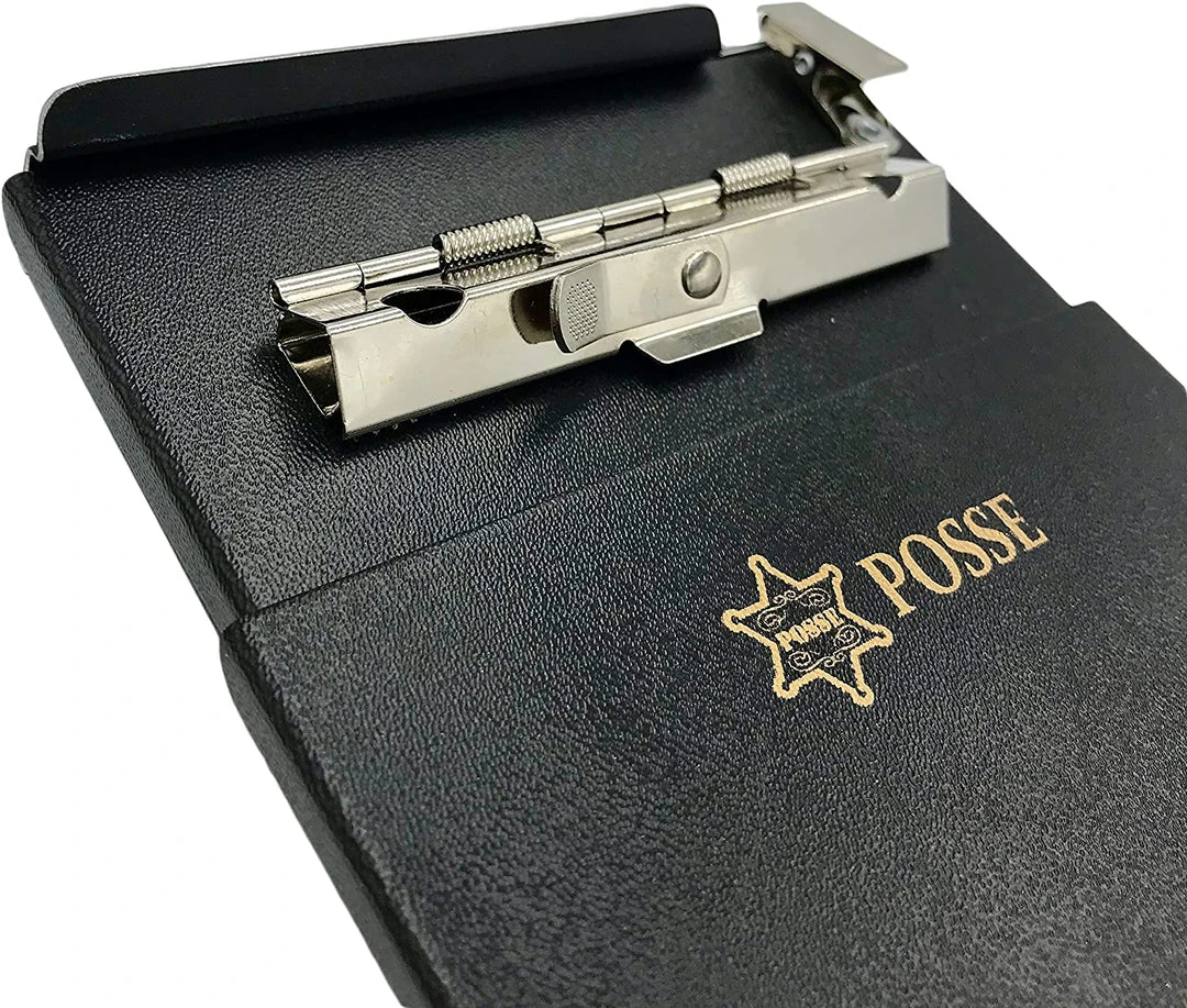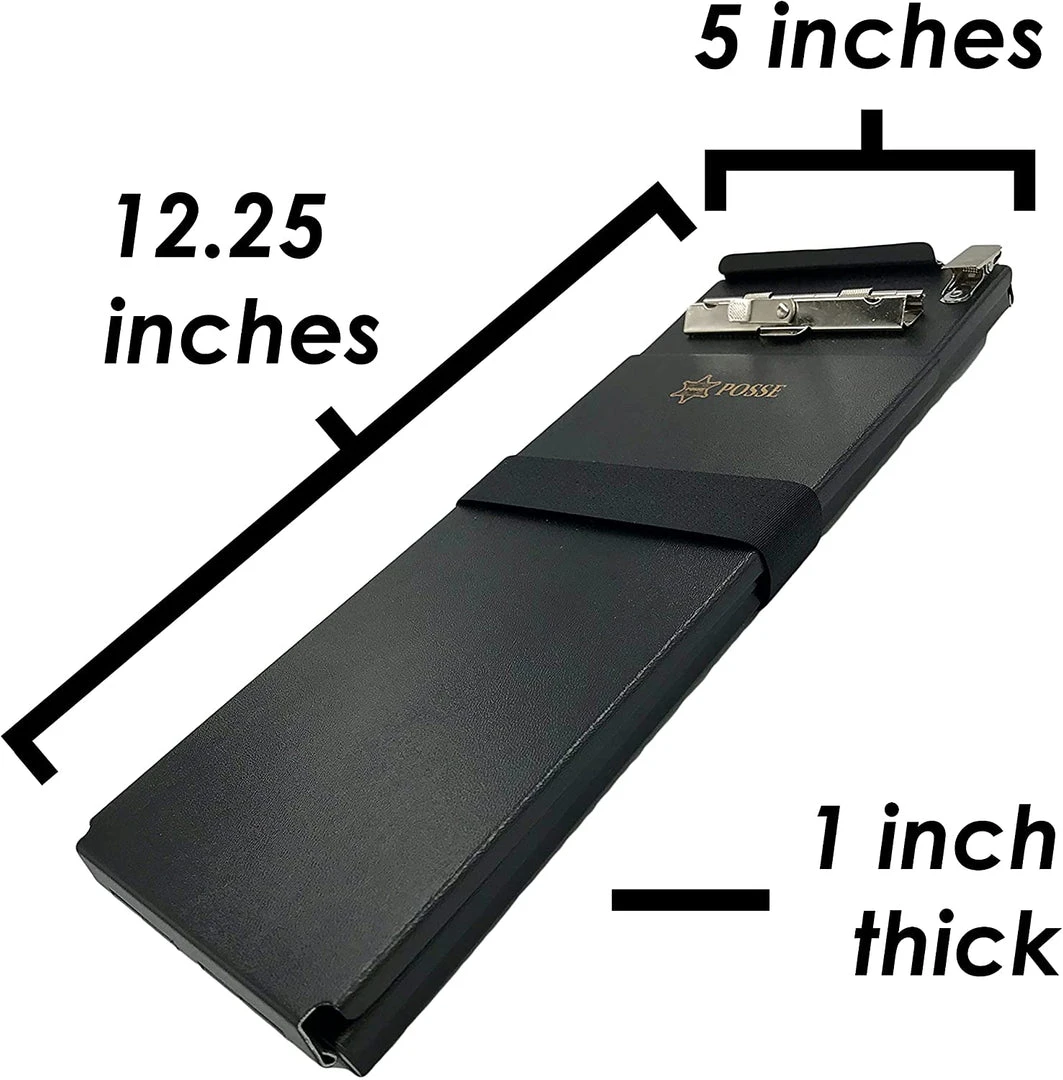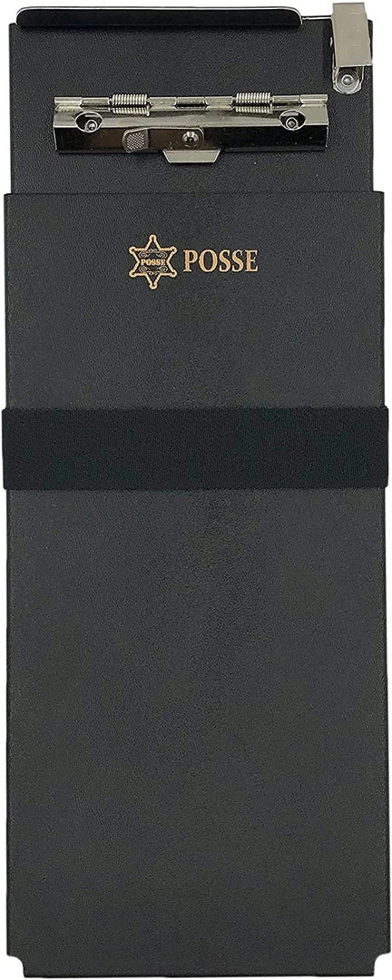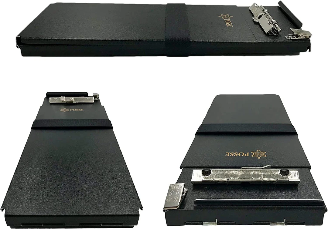 Light Weight, Non-reflective, hard, anodized aluminum Takes up to 4-1/2×10-1/2. cite books Special drivers license clip. Positive snap secures cite storage. Outer strap secures entire unit. Overall 5×12-1/4×4.