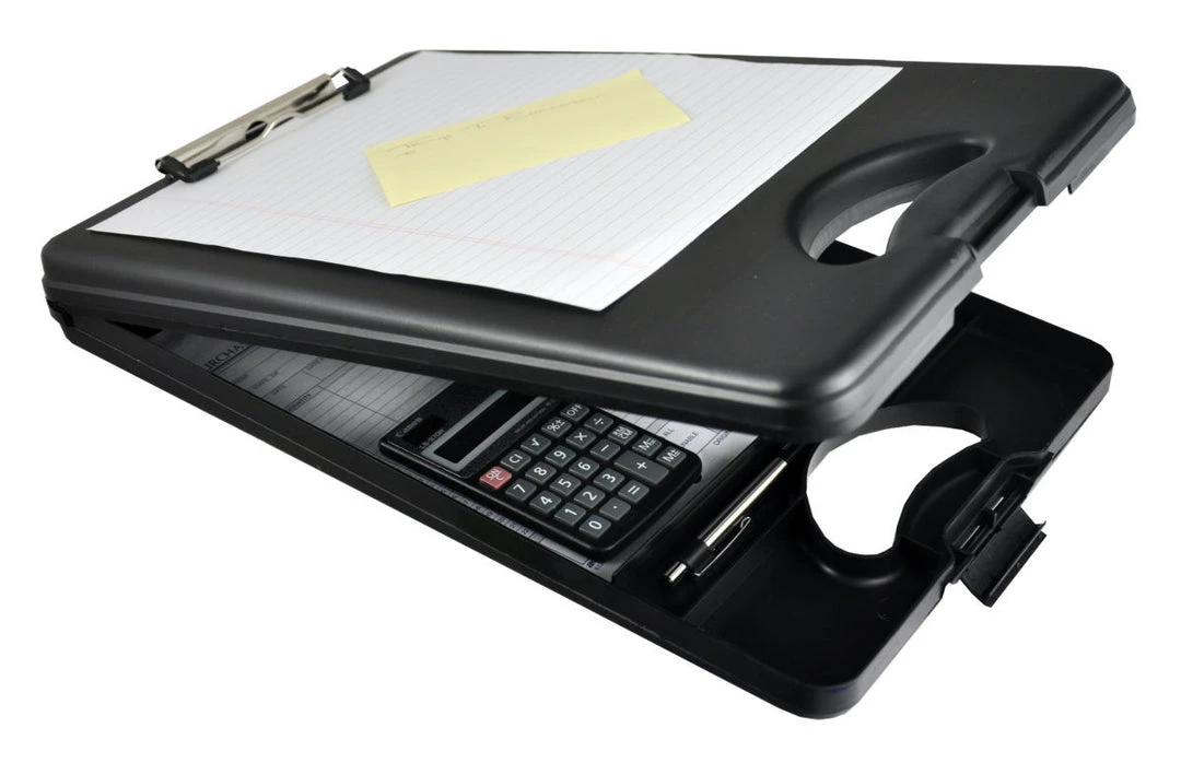 The DeskMate II storage clipboard is a necessity for anyone that needs a mobile office, featuring a molded handle making it easy to carry with you. Stay organized with the large internal storage that is perfect for items such as writing instruments, literature, contracts, rosters, scorebooks, pad of paper and more. This product is a great item for coaches, truckers, EMTs, public safety workers, teachers, builders and more!