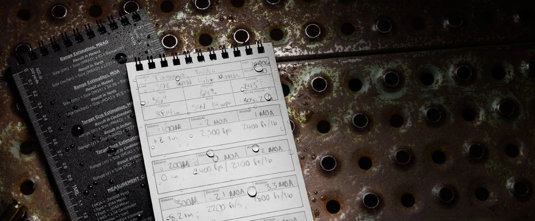 Save critical “data on previous engagements” in a simple, weatherproof format. Reference material includes wind calculation and MOA – MRAD conversions. Simplified, distilled form design makes recording and referencing easy. Weatherproof construction will save your data from rain, sweat, and mud.