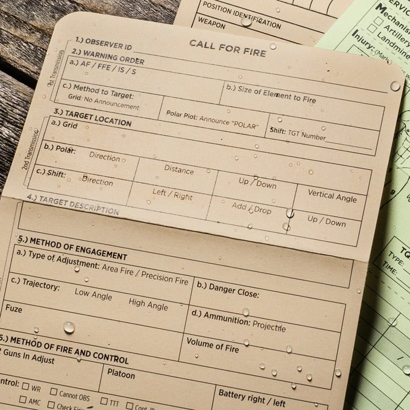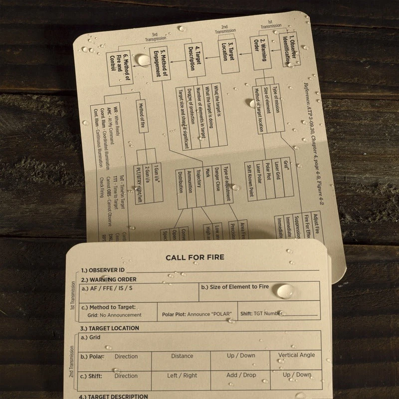 Guarantee readiness with foldable mission critical forms. Accessible as an index card, store in any pocket for quick access to your most vital field info.