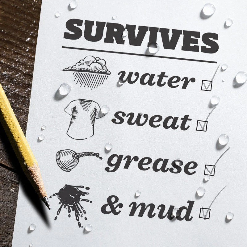 - 100% waterproof synthetic sheets, tear resistant, can be cut, punched, and perforated