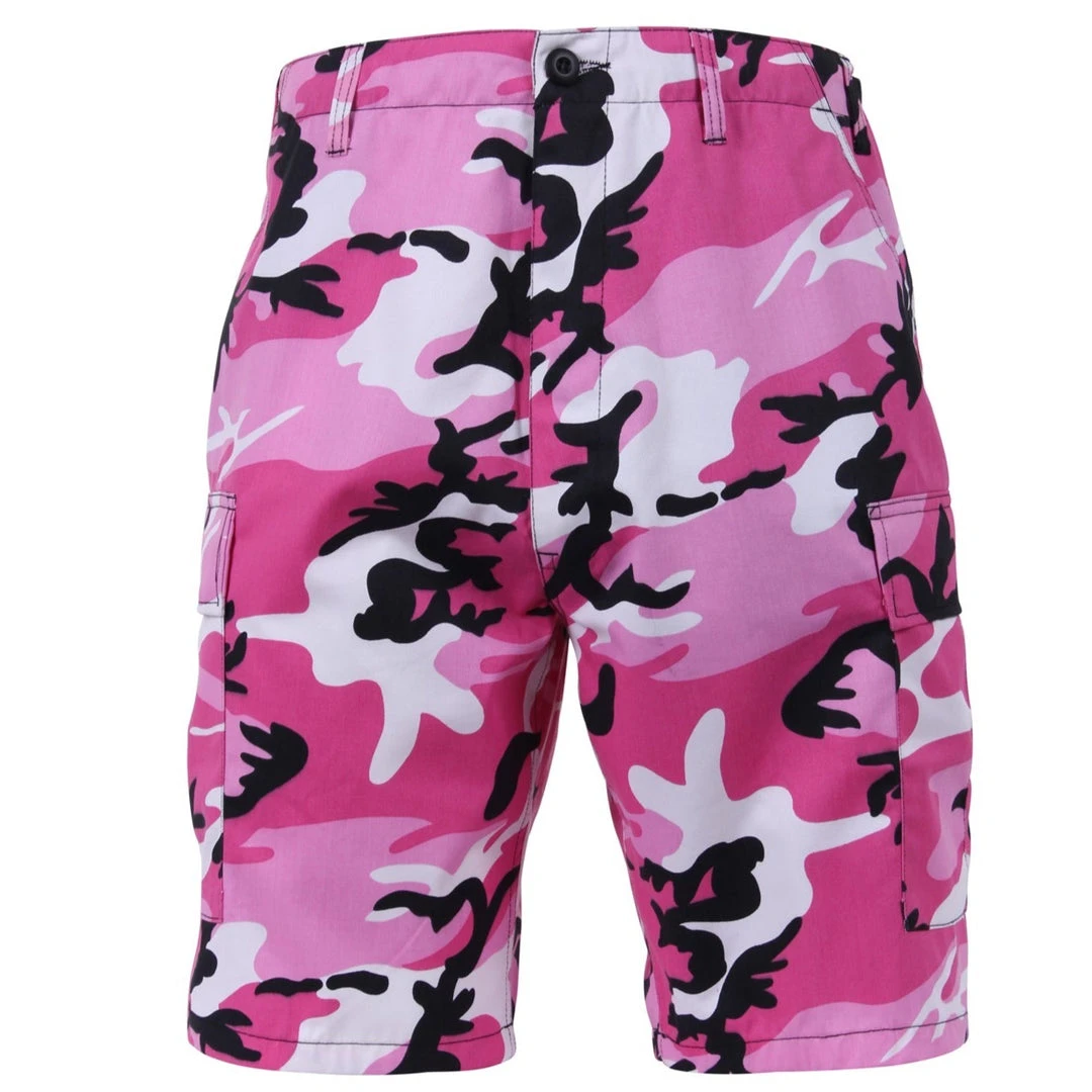 Stand out in Rothco’s Colored Camo Tactical BDU (Battle Dress Uniform) Shorts; the combat-tested military shorts are available in various colored camouflage patterns including city camo, ultra violet camo, and black camo. In the street or in the field, the military cargo shorts feature a cotton / polyester blend to withstand wear and tear. Modeled after the U.S. military’s standard-issue Battle Dress Uniform, the camo shorts include six versatile pockets, including two large button-down pleated bellow side cargo pockets, two front slash pockets, and two rear button-down pockets. For your ideal fit and feel, the camouflage tactical shorts feature adjustable pull-tabs on the waist.