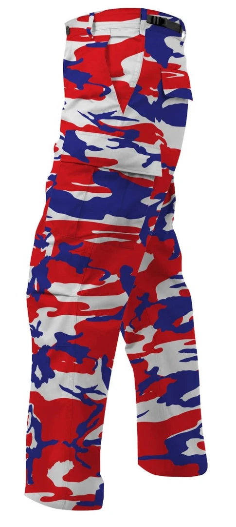 Red, white & blue camouflage is the perfect camouflage combination for those complex individuals wanting to make a statement. White signifies purity and innocence, red is a show of bravery and valor and the color blue shows dominance. Put the 3 colors together and you have an awesome pair of patriotic camo pants that signifies vigilance, perseverance and justice. |