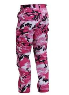 Pink camouflage is the perfect urban outfit for those looking to standout. The color pink is a delicate color that is associated with people who are nice, plateful, romantic and tenderhearted. Pink camo pants are perfect for the person who loves others and the outdoors. These pink came pants matches other warm colors or even opposite colors on the color wheel. |