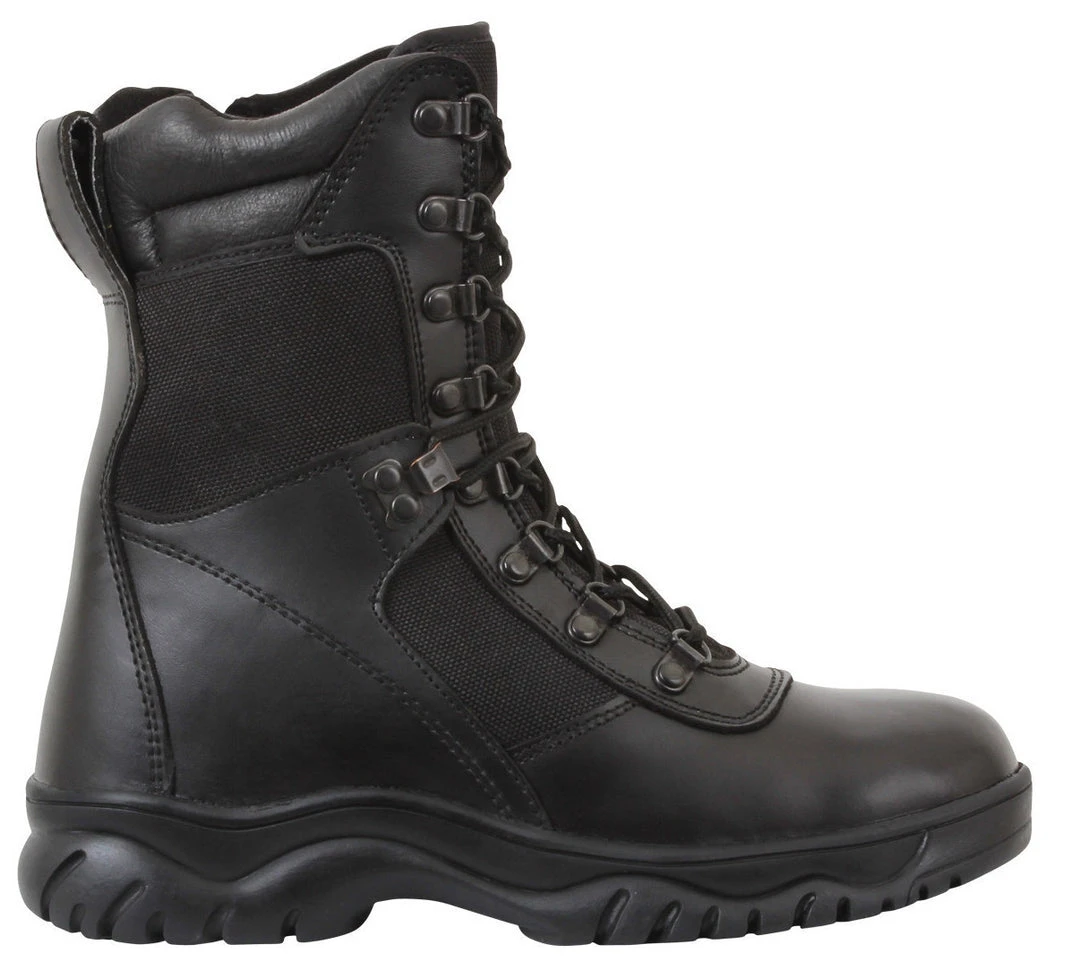 One of our number one tactical boots, Rothco’s Forced Entry Tactical Boots are built for maximum durability in the field. Constructed with a full grain leather vamp, action leather upper and pigskin leather collar these tactical boots are designed to last. The steel shank, moisture-wicking lining, and gusseted tongue provide additional comfort, with a slip-resistant sole for a better grip. Rustproof hardware and speed laces make for easy lacing while the side-zipper allows for these Forced Entry Tactical boots to be put on and taken off quickly.