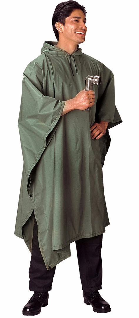 Rothco’s G.I. Type Military Rip-Stop Poncho is the ideal military style poncho that features a durable waterproof polyester material. The rain poncho has 2 snaps on each side for double the protection from the elements and has grommeted corners that allows you to use the poncho as an emergency shelter.