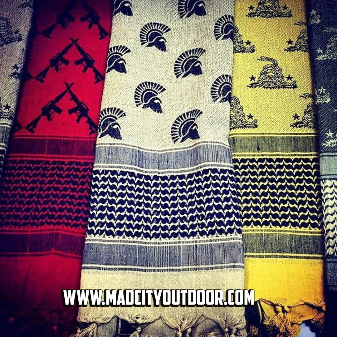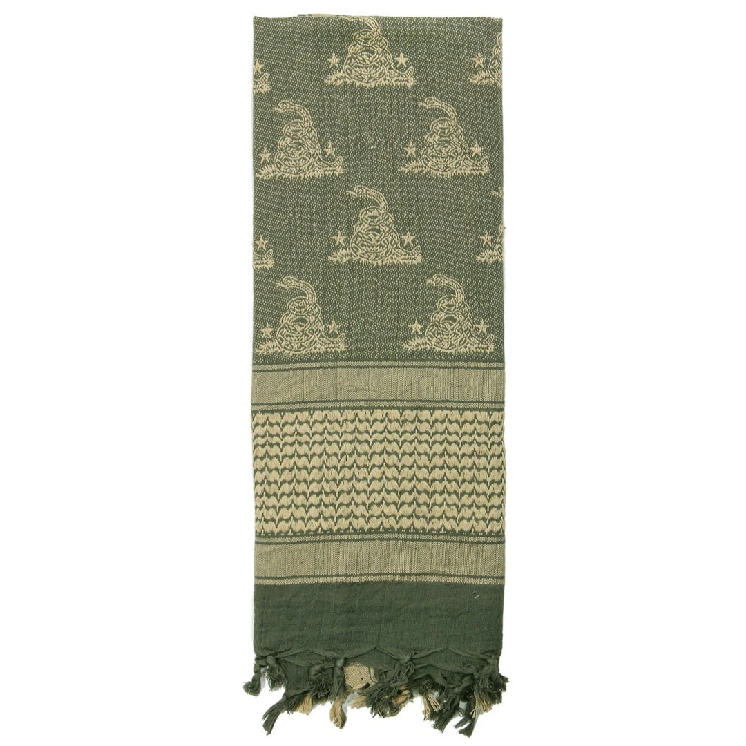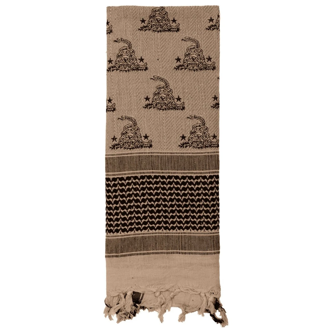 A new spin on a classic, Rothco Snake Shemagh Tactical Desert Scarf features a scarf with a black snake Gadsden design . Shemaghs are a traditional desert head-wear that are designed to protect the head and neck from sun and sand. These tactical scarves are worn by military personnel worldwide and can also be worn as a fashion accessory.