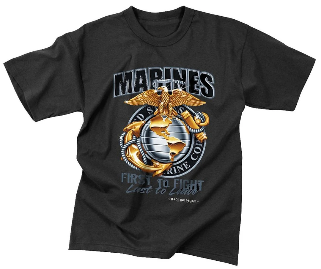Rothco Graphic Printed T-Shirts Black Ink Marines First To Fight T-Shirt