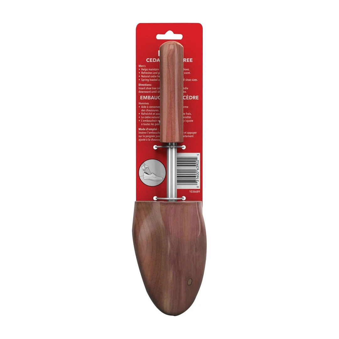 Keep your shoes in shape with Kiwi’s Cedar Shoe Tree – made with natural cedar to provide freshness by absorbing odor. Spring-Loaded and adjustable to fit most shoe sizes.