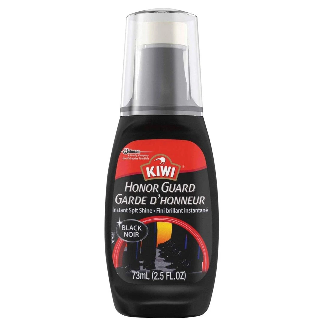 Kiwi Honor Guard Military Spit Shine Polish to gives shoes a high-gloss finish & look great! Specially made for use with military shoes & heels. The Spit Shine Polish has built in sponge applicator ensures no mess when applying. It is water resistant and weighs 2.5 ounces. Made in USA.