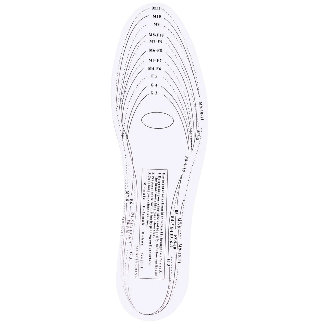 Rothco Memory Foam Insoles feature a 4mm memory foam center with a 1mm white EVA top. The foam insole can be added to shoes or boots for extra comfort and fit the following shoe sizes. Men: 4-13, Women 5-10, Boys 4-6, Girls 3-4.