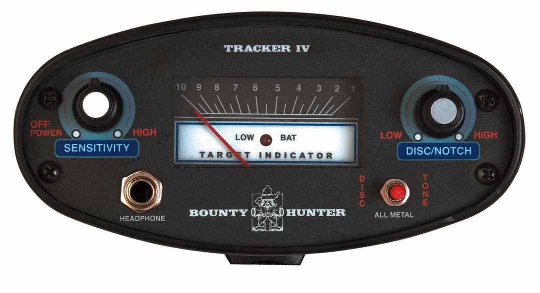 The Bounty Hunter Tracker IV Metal Detector with Ground Trac offers you high-performance metal detection. Featuring a sleek build with two operating controls and a mode-selection switch, this model is easy to use. The built-in Ground Trac operation automatically balances the detector to soil conditions while you look for treasure. This Bounty Hunter metal detector includes an interchangeable, waterproof search coil that works well even in extreme ground conditions, from salty, wet beaches to highly mineralized inland sites. It also comes with an extended armrest and headphone jack to offer you convenient and comfortable detecting. The tracker metal detector features a dual tone discriminate system with sensitivity adjustment so you can tell you what kind of metal you have found before you start digging, making it an ideal choice for both serious and casual treasure hunters.