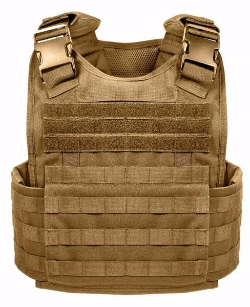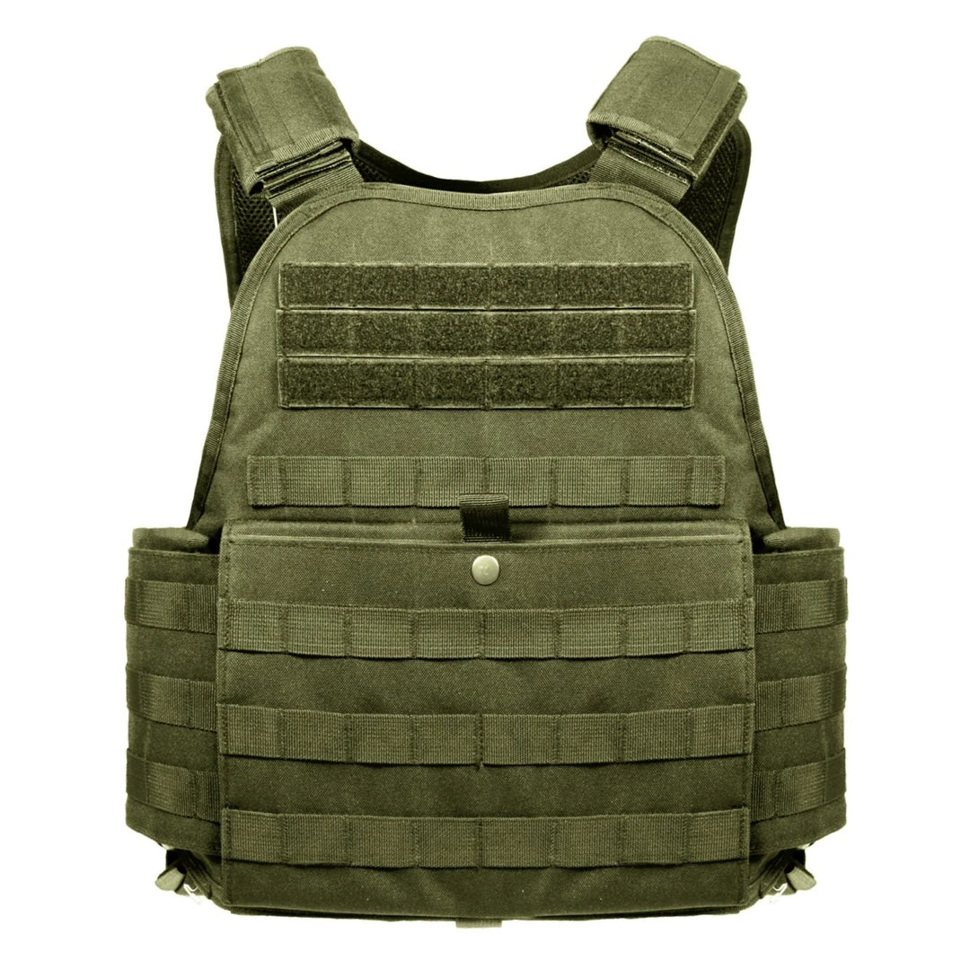 Rothco’s MOLLE Plate Carrier Vest is constructed of heavyweight 600 Denier Polyester and features MOLLE webbing that covers most of the vest, making it ideal for attaching modular pouches and accessories. Front and back internal sleeves for soft armor and plates measure 13.75″ x 10.25″ x 1″. The tactical vest includes an adjustable/detachable cummerbund with pockets for side panel plates (plate & soft armor not included). In addition, the MOLLE plate carrier vest features adjustable shoulder straps with detachable pads, an emergency drag handle, padded mesh interior for breathability and quick release side buckles for easy removal.