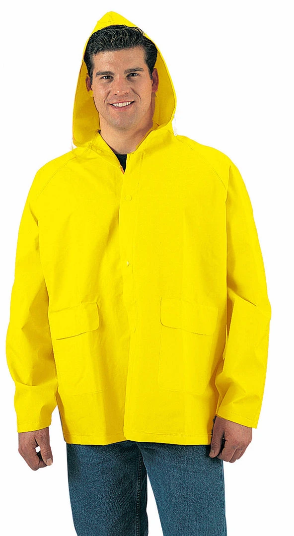 Rothco’s classic yellow PVC rain jacket is constructed with a heavy outer PVC material with a polyester lining and features a drawstring hood.