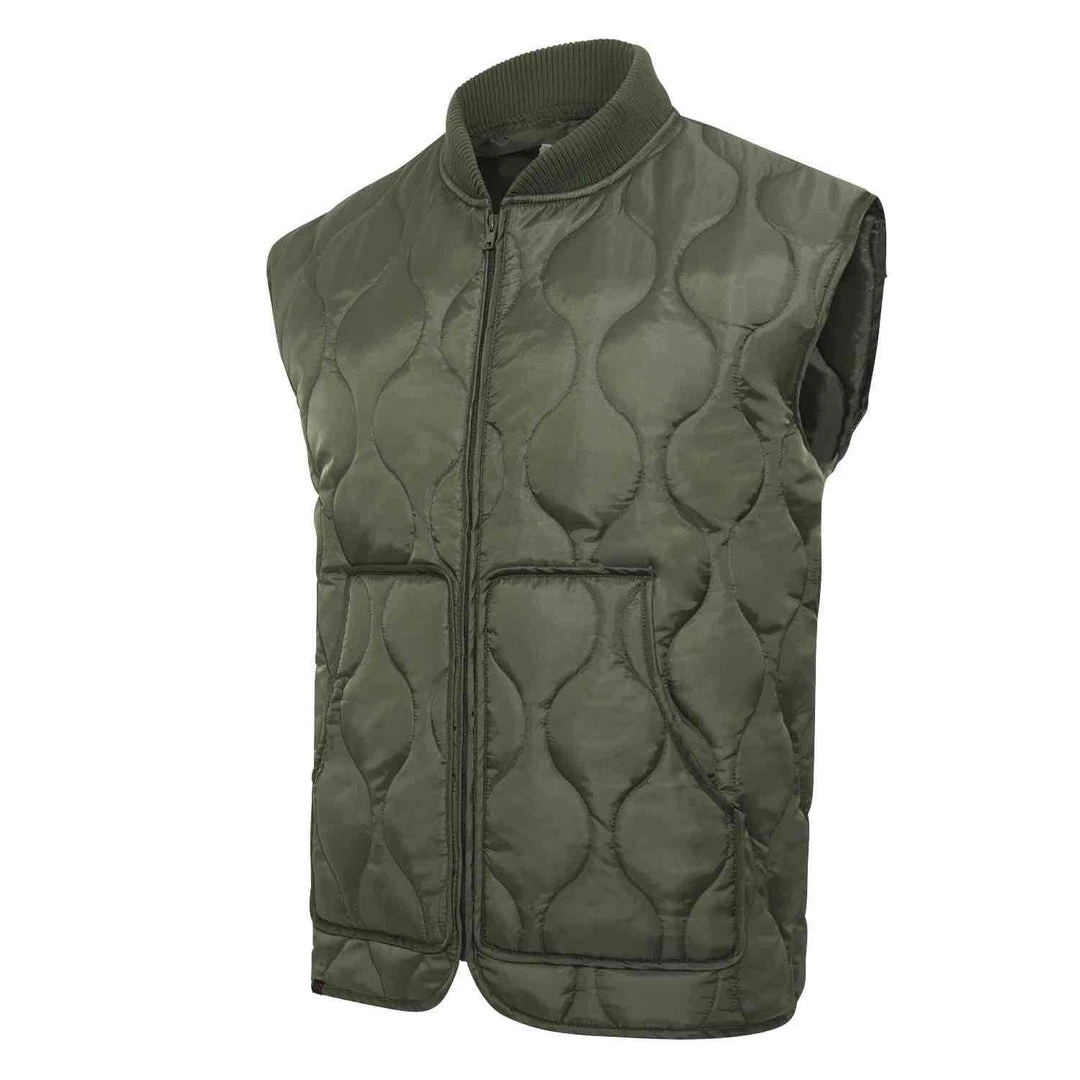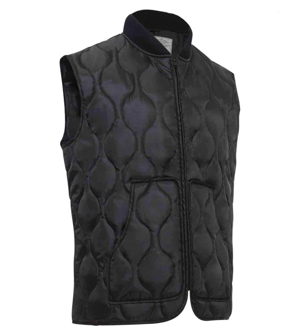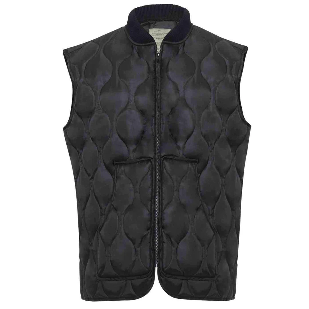 This one-of-a-kind quilted woobie vest is inspired by the reliably warm poncho liner that has been a staple in the field packs of American soldiers since before the Civil War. Like the classic standard issue poncho liner, the quilted woobie vest is lightweight and versatile. The two deep slanted front pockets contain more than enough room to hold your cell phone, keys, wallet, and more. With a high-quality plastic zipper and a stylish ribbed knit cotton collar, our quilted woobie vest transforms the quintessential comfort of the poncho liner into a distinctive and fashionable vest that you can wear any time of year.