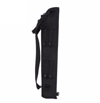Store and carry your shotgun at the range or in the field with Rothco’s Tactical MOLLE Shotgun Scabbard. This gun case is perfect for soldiers, hunters, tactical professionals, and more. A removable adjustable shoulder strap on the shotgun case enables easy transportation. The tactical gun case has two D-rings and 14 rows of MOLLE webbing on each side plus four movable MOLLE straps for mounting tactical accessories. A ½ inch of padding around the tactical shotgun case provides your shotgun with a layer of added protection. An adjustable and removable retention strap on the shotgun carrying case secures your shotgun grip in place while on-the-go. The tactical shotgun scabbard measures 29.5 inches long with a 6-inch opening to accommodate shotguns of most sizes.