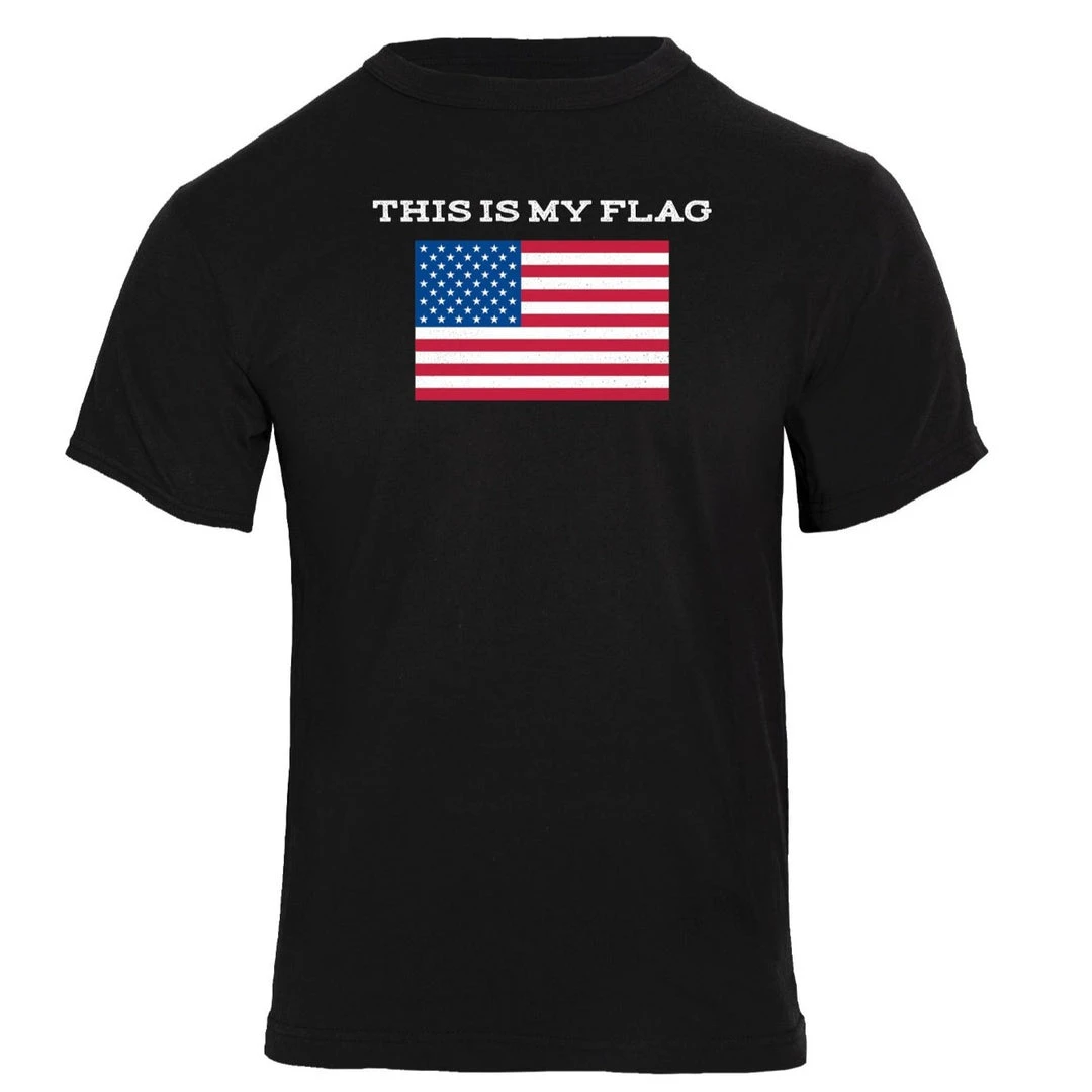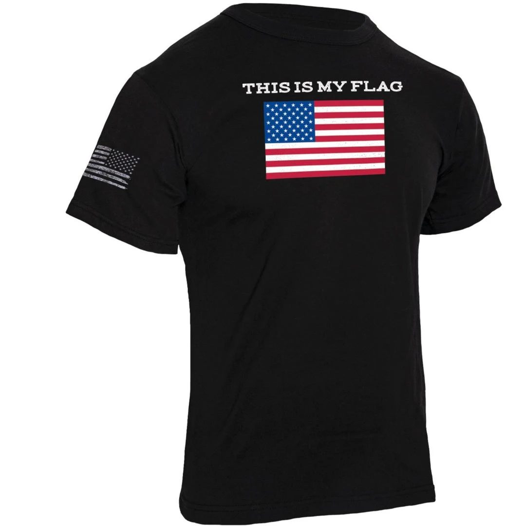 Comfortable and lightweight, this Patriotic T-Shirt features an American Flag graphic and is accompanied by the phrase “This Is My Flag”. The American flag shirt features a branded Rothco “R” on the left sleeve and a reverse distressed US flag graphic on the right sleeve. The USA flag shirt is designed with a tagless printed label for added comfort.