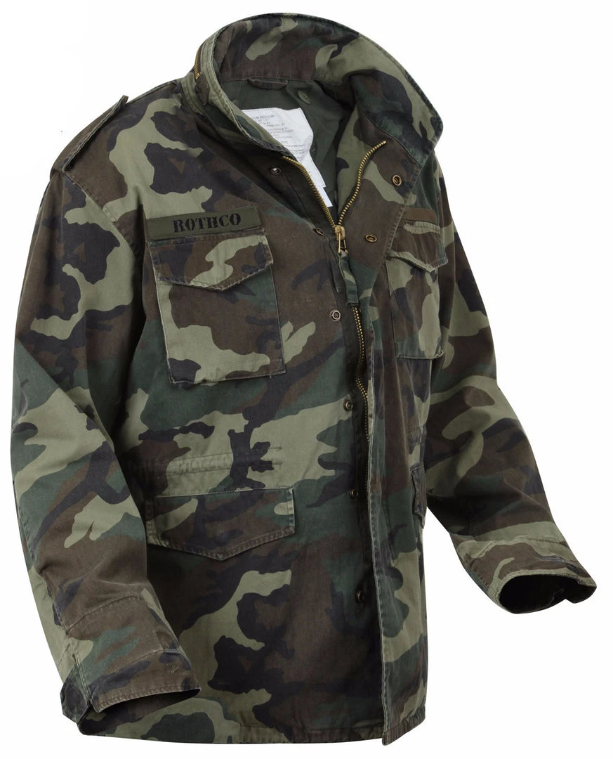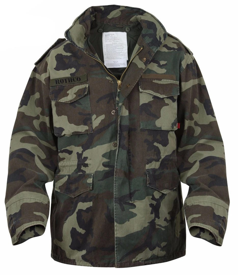 Nothing says vintage military clothing like an M65 Jacket! Rothco’s Vintage M65 Field Jacket features a super soft 100% washed cotton outer shell and lining. The M65 jacket also features a concealed hood, heavy brass zipper & snaps up storm flap, two hook & loop chest tabs lining, and a removable Rothco Name Patch.