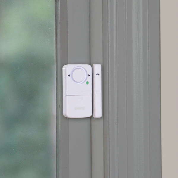 - Compact, magnetically triggered alarm sounds when window or door is opened