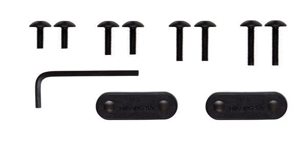 For use with 3-hole patterned holsters. Positions upper portion of holster farther away from body without spacing the bottom any further, giving an increased outward cant. Designed to customize holster placement to accommodate various shapes.