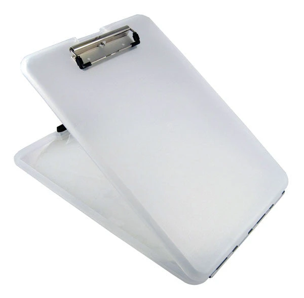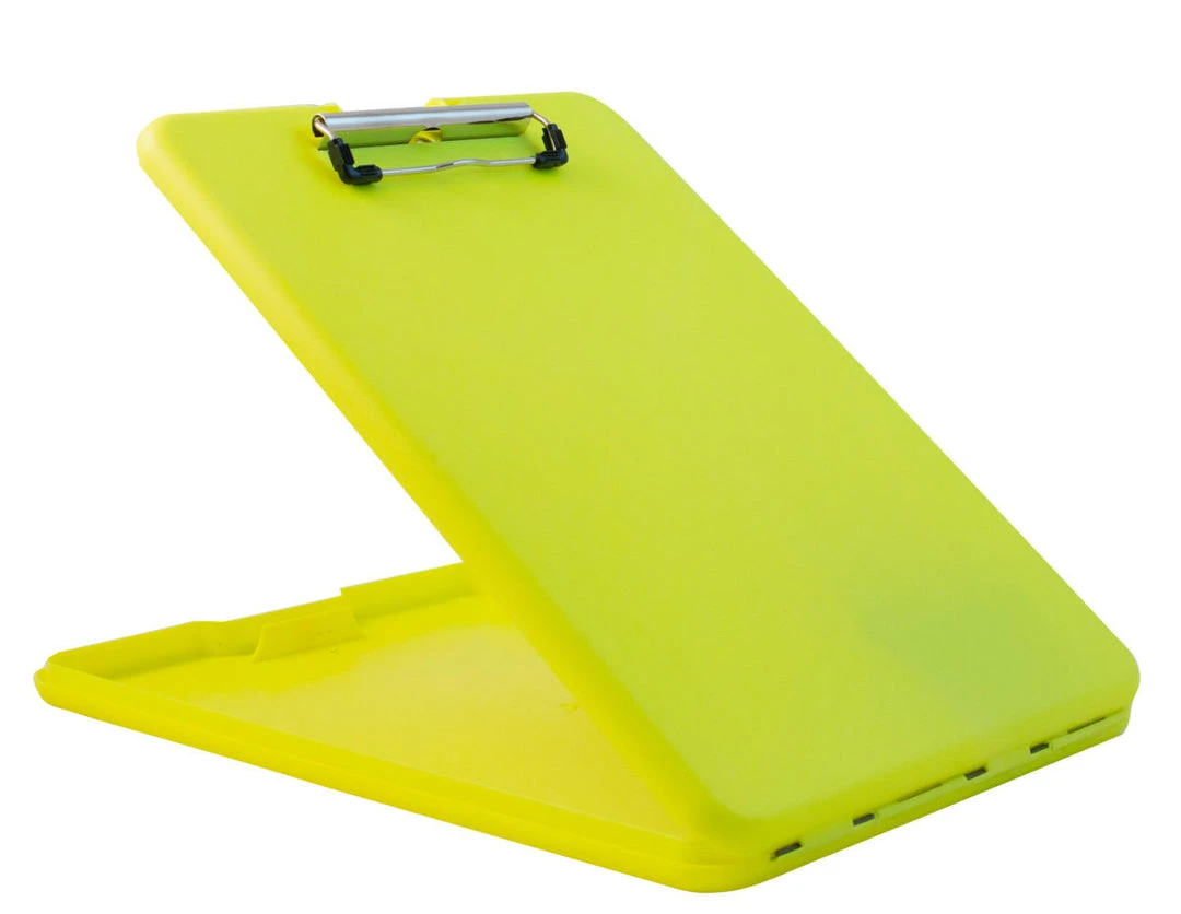 The Saunders Slimmate storage clipboard is a great product for any individual who needs a sturdy writing surface whether at the office, in a meeting or in the field. This slim design minimizes bulk and fits easily into a backpack, briefcase, or other tight spaces yet offers plenty of storage. Top open design allows for easy access to your documents, writing instruments and other small supplies. Widely used by event organizers, coaches, realtors, and even traveling families for the kid’s homework, or crafting. Latch stays securely fastened when thrown to the ground or into the trunk of a vehicle when not in use. Choose from our large assortment of colors to match your style, or just organize by color!