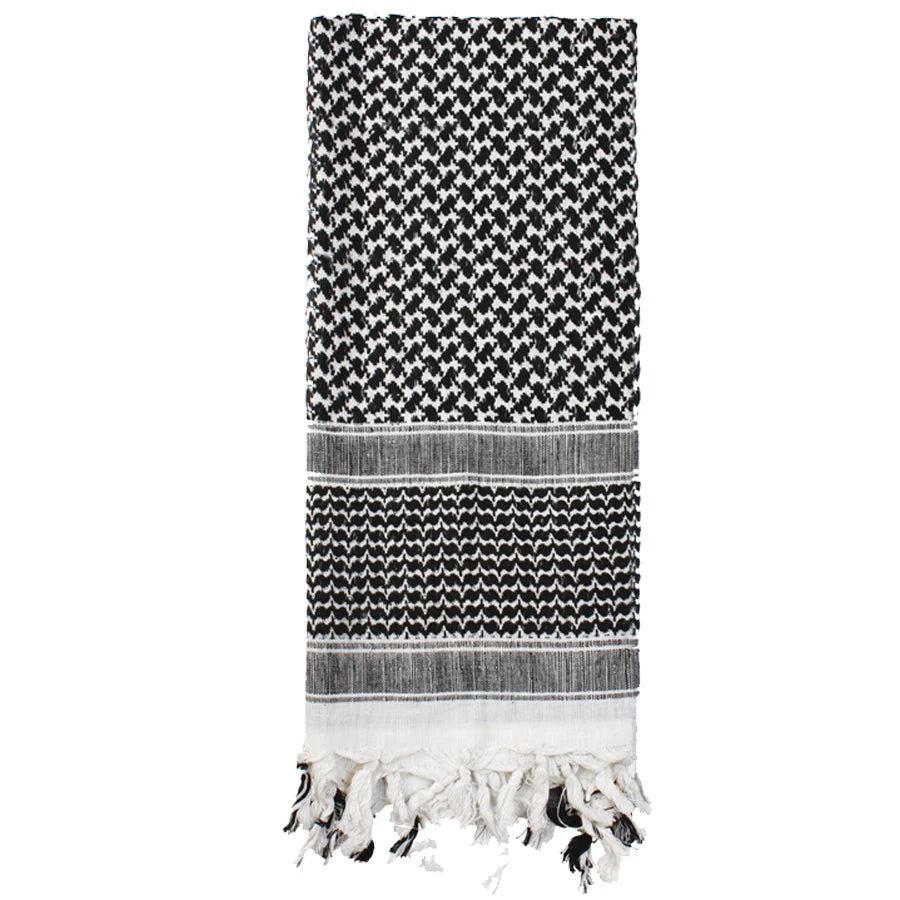 Wear as a face mask, balaclava, or headwrap, Rothcoâs Lightweight Desert Shemagh Scarves are adaptable to any environment. Ideally worn while traveling through a desert, snowstorm, and any other extreme weather condition you may encounter, these tactical scarves are a must-have for anyone! Made from a breathable lightweight cotton construction, the keffiyeh provides a perfect combination of comfort and resiliency while protecting your head and neck from the sun, dirt, sand, and other debris. Measuring approximately 42â X 42â, the tactical scarf can be wrapped around your head and neck to make a face mask, half-mask, skullcap, and much more. The versatile lightweight keffiyeh is a must-have for your Bug Out Bag as it can be used as a survival tool as well as a protective face cover; use the shemagh to make a makeshift tourniquet, sling, pouch, and more. Available in over a dozen colors, the tactical desert scarfs are used by military personnel worldwide and make for a great fashion accessory as well.