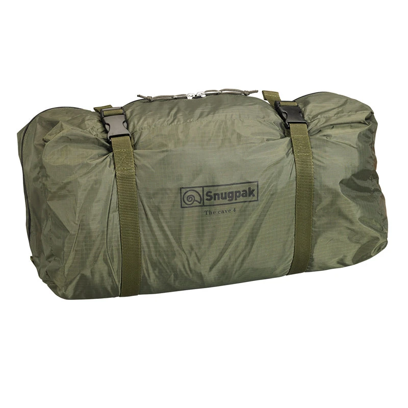The CAVE by Snugpak is a spacious and functional 4 person tent. Constructed out of the same high end fabrics and components as well as utilizes the DAC Featherlite NSL anodized poles with pressfit connectors that have made our other tents so well-known and respected. Unlike the Scorpion 2, Scorpion 3 and the Bunker, the Cave is not a Fly-First Pitch type Design. Due to its size and design the Inner Tent needs to be set up first and then the fly, if desired. The Cave has two access doors and when the Fly is used, each access door has a vestibule. Note, each vestibule is different. One has a single zip centered, the other has two zips which can create a nice wind blocked entrance if only one portion is used to gain access.