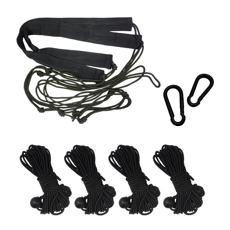 The Snugpak Hammock Accessory Kit Can be used with many different hammocks styles. Includes (4) 13ft Elasticated Cord Guy Ropes, Suspension Attachment System with Tree Protectors and (2) Steel Carabiners.