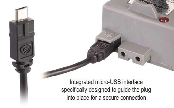 - Integrated micro-USB interface specifically designed to guide the plug into place for a secure connection