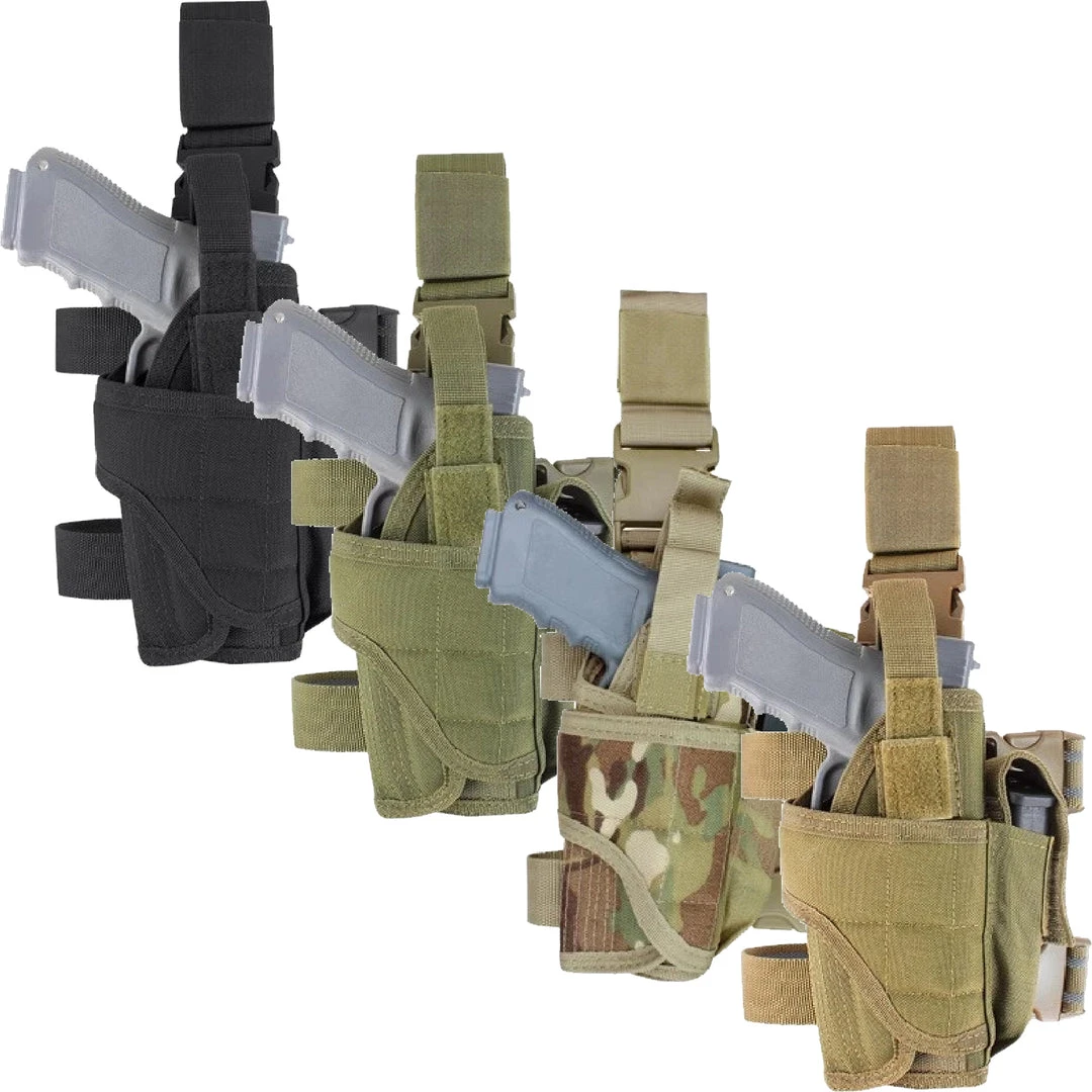 There is a reason that this holster is so popular with military personnel, hunters, target shooters, law enforcement, security and gun lovers. The answer–it’s adjustability. The Condor Tornado leg holster fits most standard firearms with a laser or light attachment. It has a unique wrap-around design to fit most medium and large frame pistols. Do not be fooled by the low price. This holster has been battle tested overseas yet affordable for the recreational airsoft player.