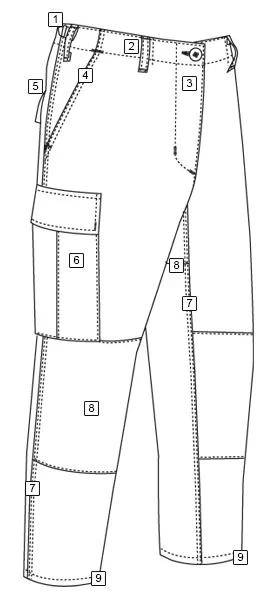 - Belt loops with 2¼” wide opening secured with 2-bartacks