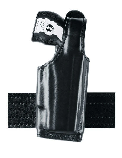 This holster is for electronic discharge weapons only. Its high ride position and thumb break release provide a quick, easy draw. The Model 520 comes standard with a clip-on belt loop attachment that features an adjustable angle option.