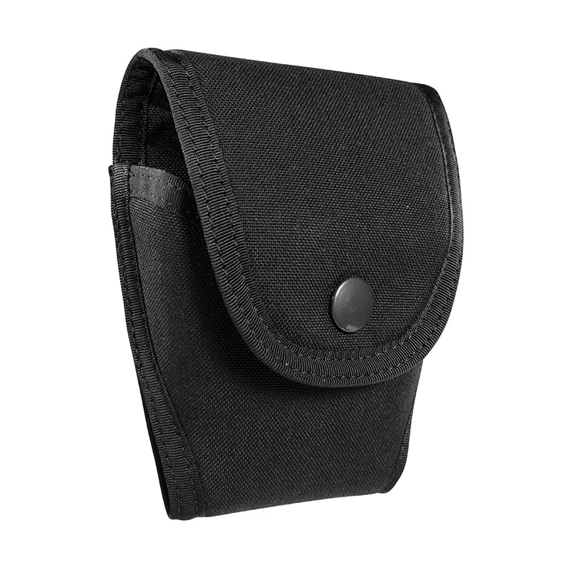 The Tasmanian Tiger Cuff Case Closed MK II is a closed top design to be used on a belt holster for handcuffs. The handcuffs are secured by a flap with a snap fastener. There is a small pocket for the key. The Cuff Case Closed MK II fits a 2.15in/55mm width belt with a hook-and-loop closure. (BELT NOT INCLUDED)