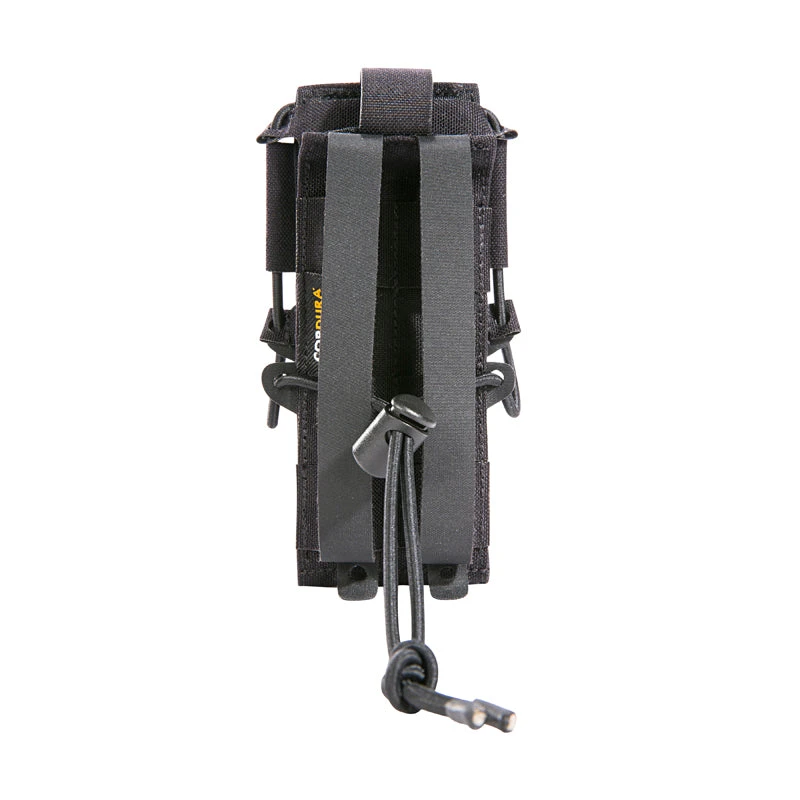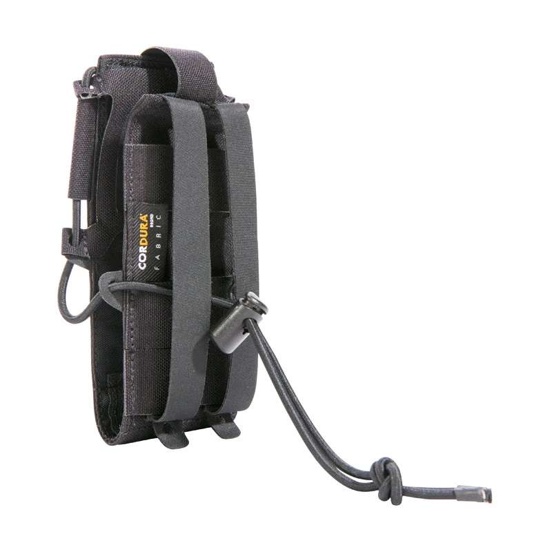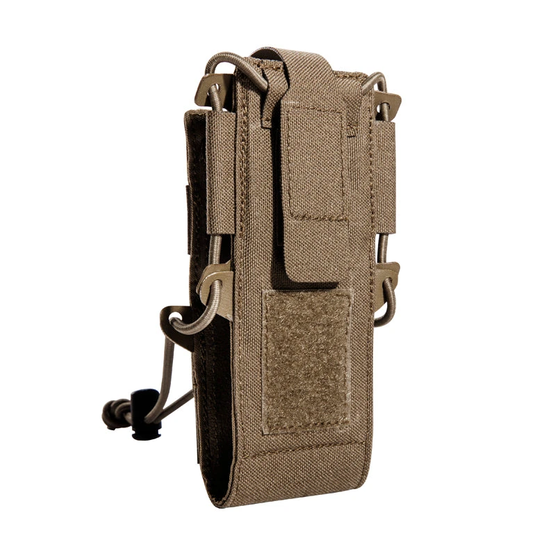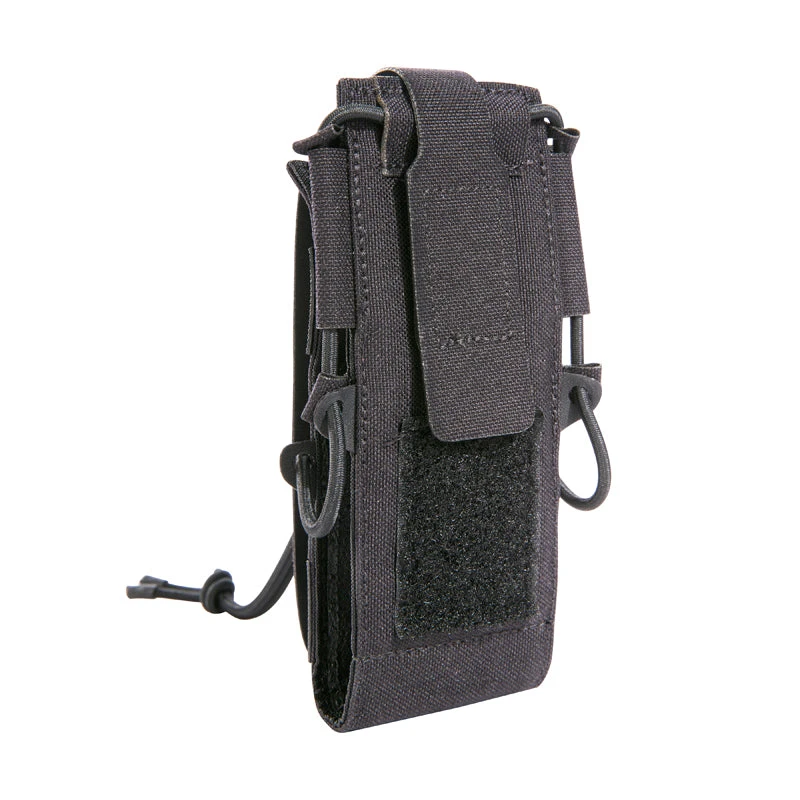 Small, folding flap radio pouch for digital radio devices. The bag has an adjustable flap angle and a display protector made of vinyl.