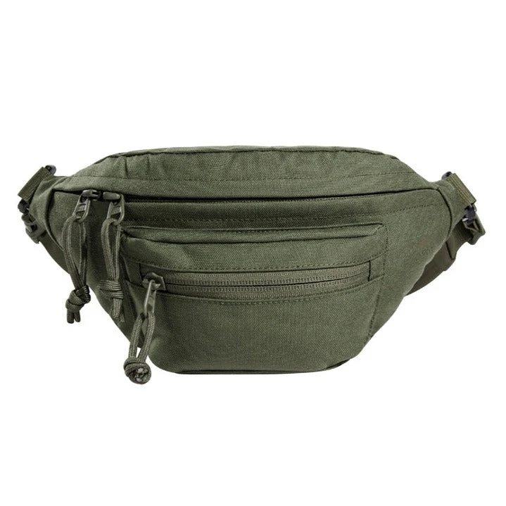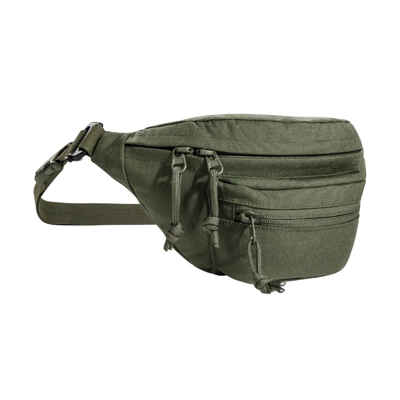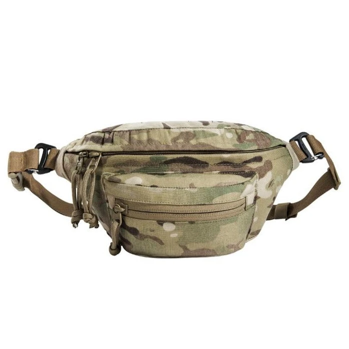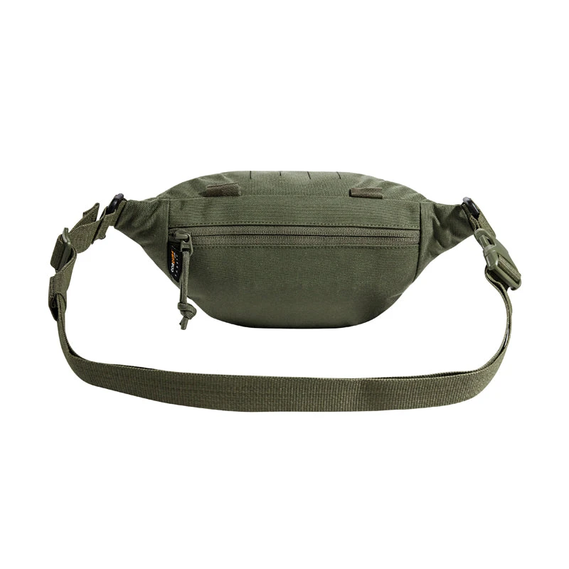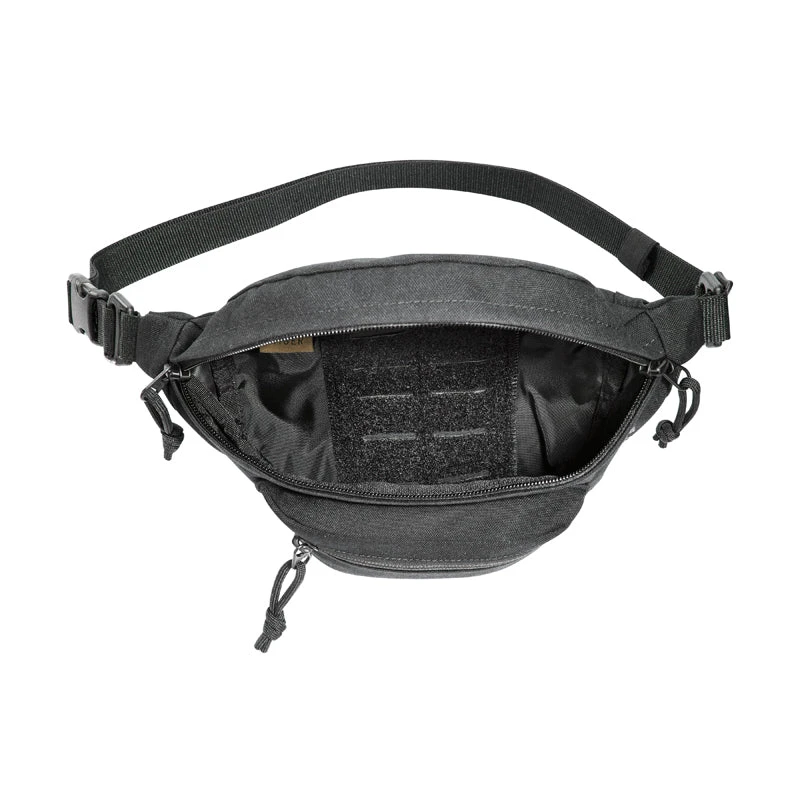The TT Modular Hip Bag has a MOLLE hook and loop main compartment, a small front pocket and an additional zipper pocket on the side. The lid has a laser-cut MOLLE strip. The belt is removable and the built-in hooks allow you to attach the bag to an equipment belt.
