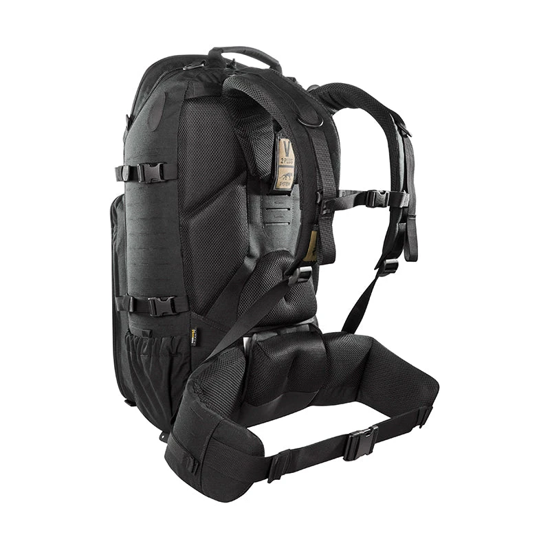 The TT Modular Trooper Pack is a military/tactical backpack designed with TT’s V2 Plus carrying system. It has two outer pockets and laser-cut MOLLE on the front and sides that allow you to customize it by adding pouches or extra gear. With an optimized design and modular functional features, the main compartment opens completely and the special zipper guides make it possible to use the pack as a top loader. The back panels of the front and main compartments feature a MOLLE hook-and-loop for customized loading. Both front pockets have zipper mesh pouches to organize your gear. The backpack has an integrated rain cover and a removable hip belt that can also be used as a Warrior Belt. The back panel can be adjusted to different back lengths.