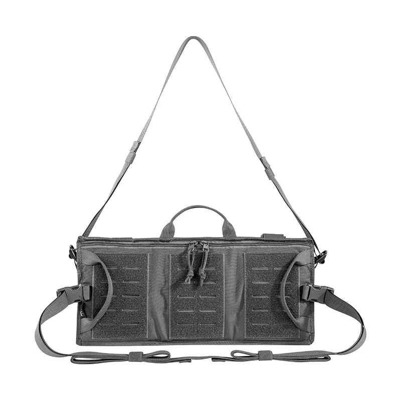 The TT TacVec Container is a bag divided into three parts that is ideally fastened under the front seat. It can be quickly removed from the vehicle in critical situations and easily used as a bandolier system. The TT TacVec Container has a removable, adjustable carrying strap, durable handle, a flap with hook-and-loop and quick-release fasteners, MOLLE hook-and-loop on the backside and hook-and-loop surface for color-marked and writable strips. Ideal for tactical/military vehicles and is also as a civilian bug-out bag.