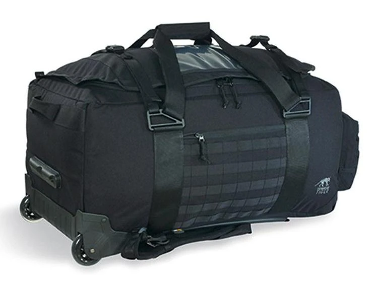 The Tasmanian Tiger Transporter bag features wheels for quickly getting your gear from the airport to your destination. The bag features it all, MOLLE straps, lots of pockets and room to hold all your clothing and gear.