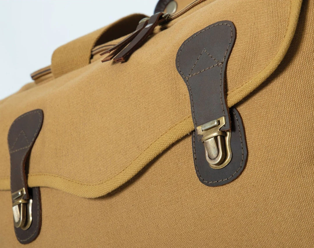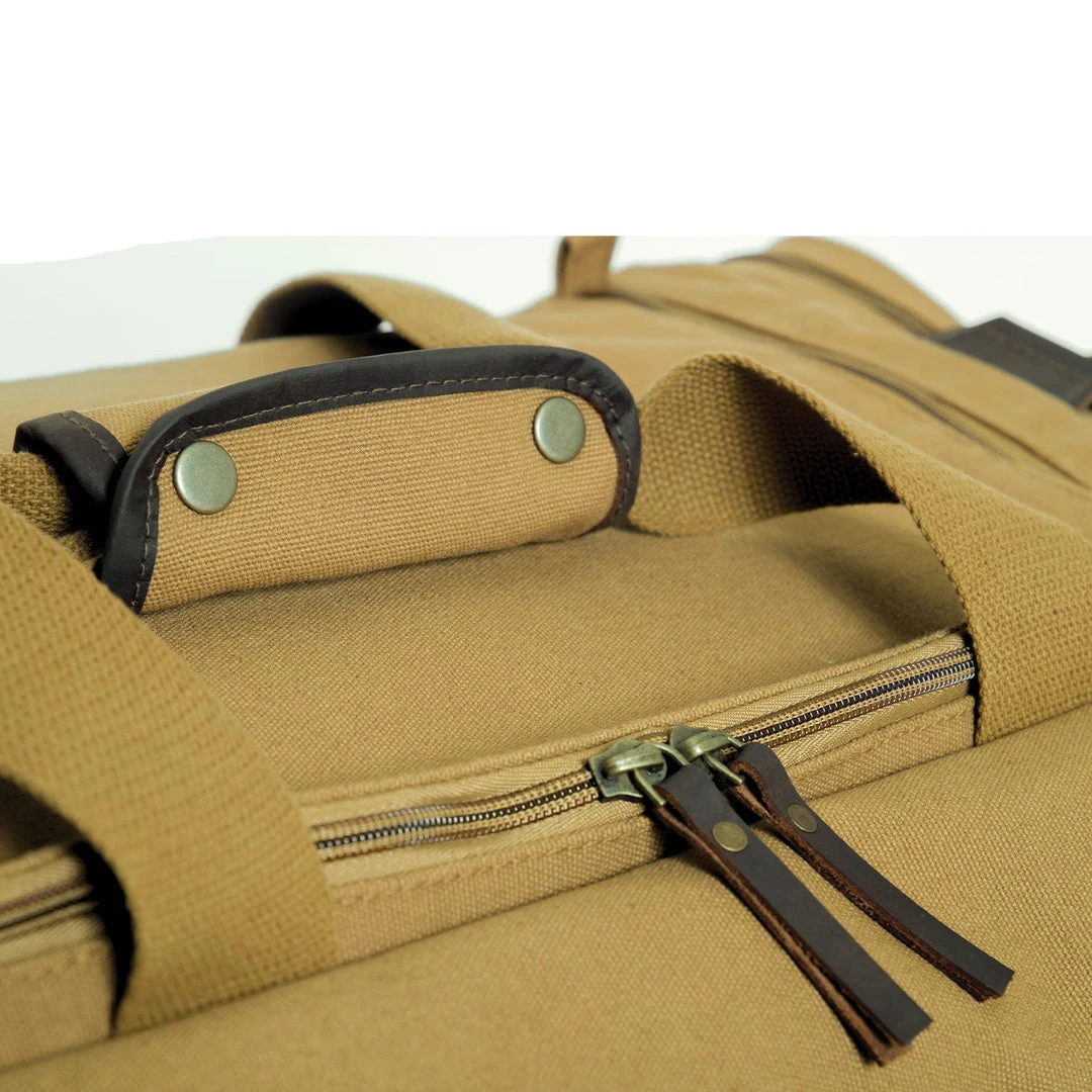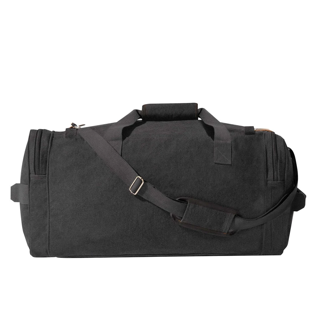 Rothco Canvas Long Weekend Bag is the perfect bag for a weekend getaway! The bag features classic canvas, leather accents and antique brass hardware. The bag features 1 front zippered pocket with flap and brass closure and 2 zipper side pockets, great for storing toiletries and other travel accessories. The bag also features 2 convenient carry handles, an adjustable shoulder strap and leather zip pulls.