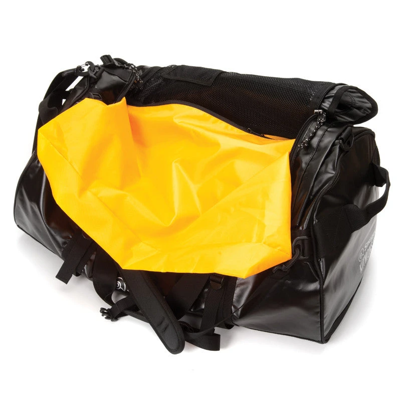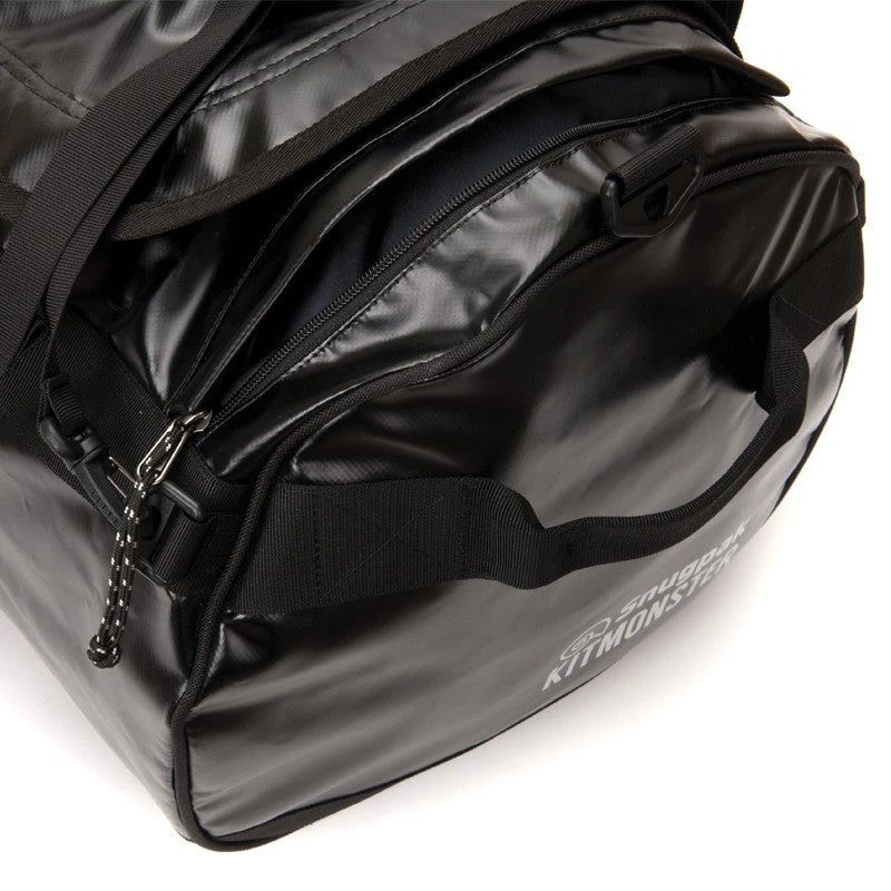 The upgraded Kitmonster 70 Generation 2 outer shell is constructed out of super tough, durable, waterproof tarpaulin fabric providing the ultimate protection for your equipment, the perfect choice for travel and rugged outdoor terrain. Features include two different wet & dry internal compartments, one large internal section to store used or wet clothing, keeping your other equipment dry. A second compartment can be found on the side which has easy access from the outside, perfect for boots!